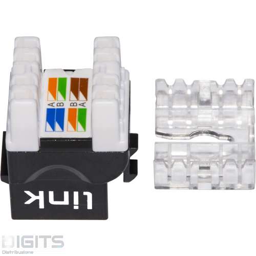 PRESA RETE KEYSTONE JACK RJ45 CATEGORIA 6 UTP COLORE NERO 180° CONTATTI DORATI 50 MICRON